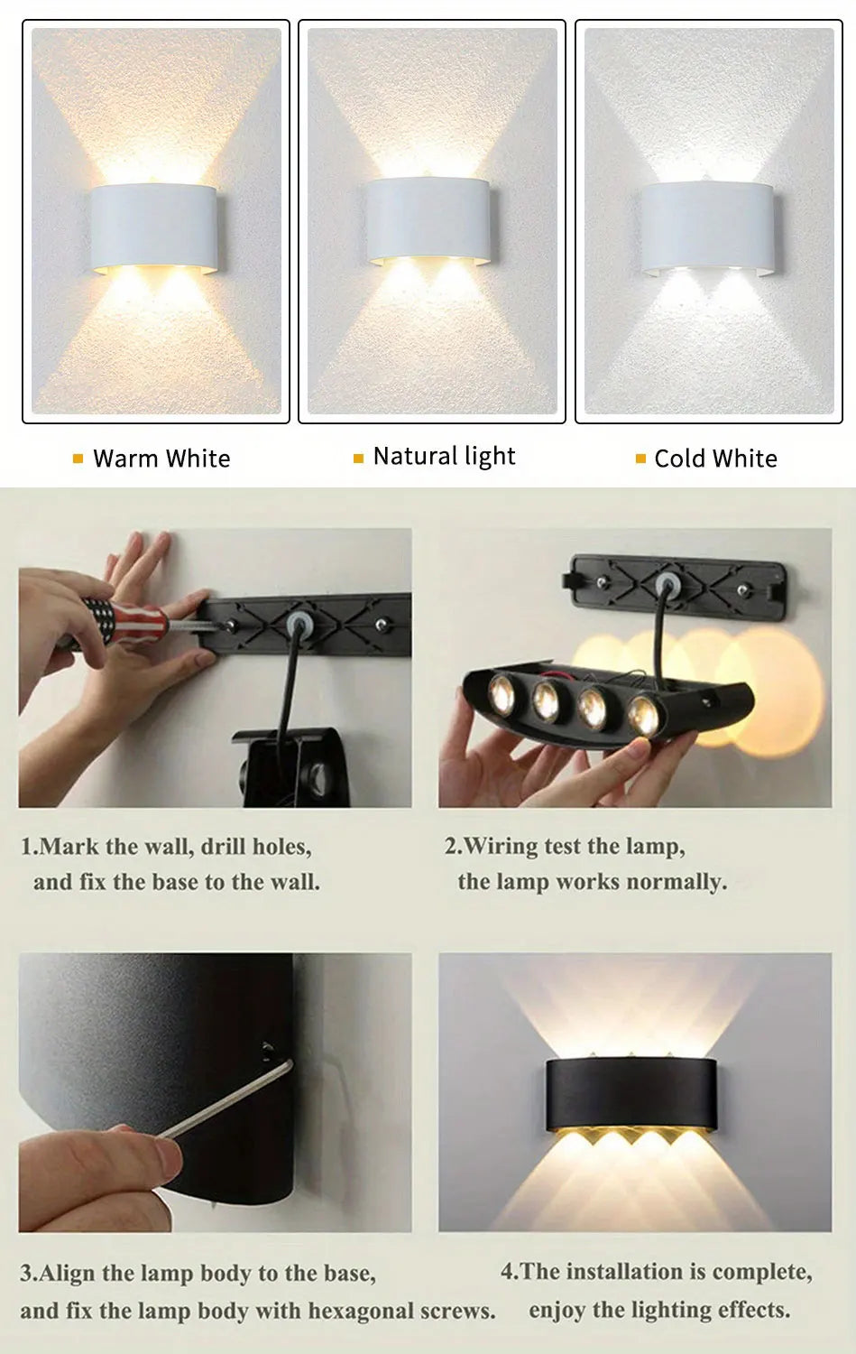 The Modern LED Up & Down Wall Lamp offers a stylish combination of smart motion sensing, waterproof durability, and minimalist Nordic design. It is an excellent lighting solution for enhancing both indoor and outdoor spaces with efficient and decorative illumination.
