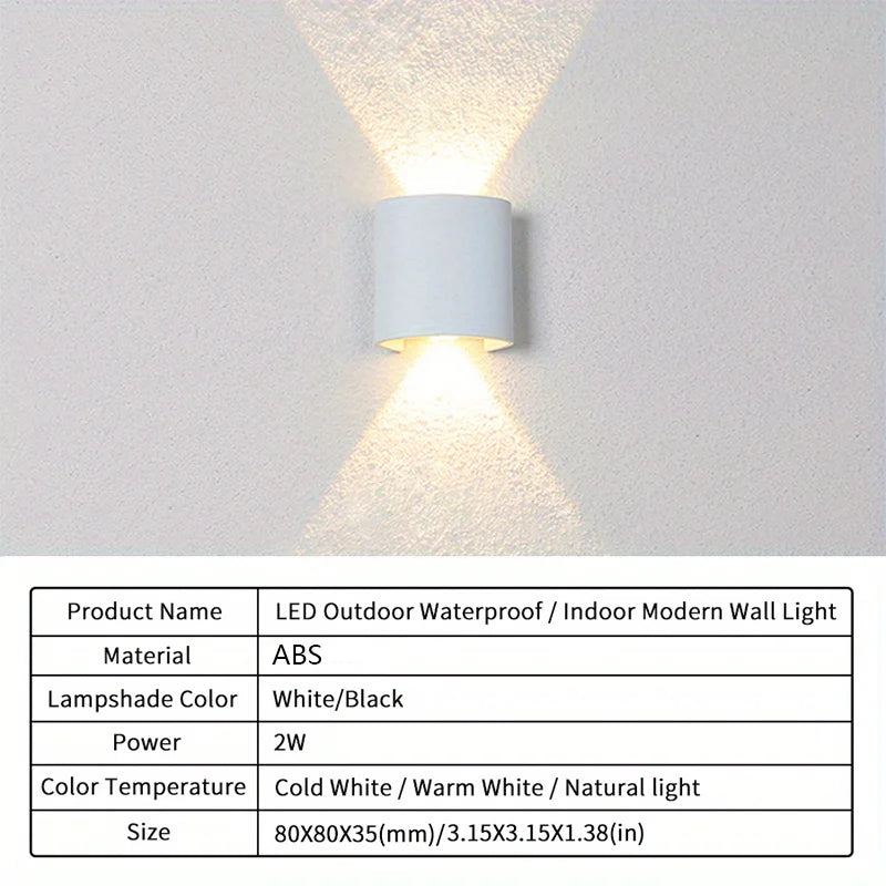 Enhance your home décor with this Modern LED Up & Down Wall Lamp, designed with a minimalist Nordic style and durable ABS construction. This compact wall-mounted light provides elegant upward and downward illumination, creating a stylish lighting effect for bedrooms, corridors, gardens, balconies, and exterior walls.
