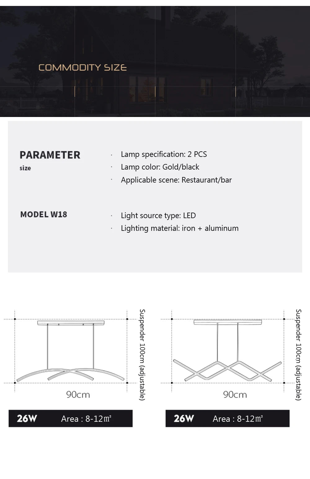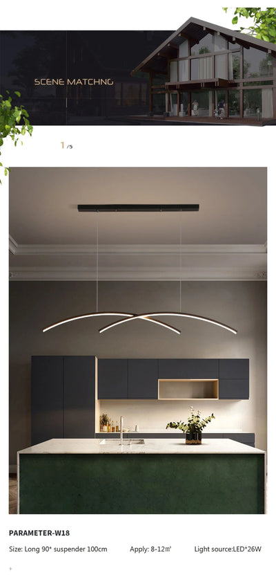 Elevate your home with this Modern Minimalist Pendant Light, designed to bring a contemporary flair to dining rooms, kitchens, and bedrooms. This elegant chandelier features a sleek aluminum body available in black or gold, adding a touch of sophistication to any decor. Perfect for various settings, including parlors, studies, and hotel rooms, it effectively illuminates spaces of 3-5 square meters, creating a warm and inviting atmosphere for dining or relaxation.