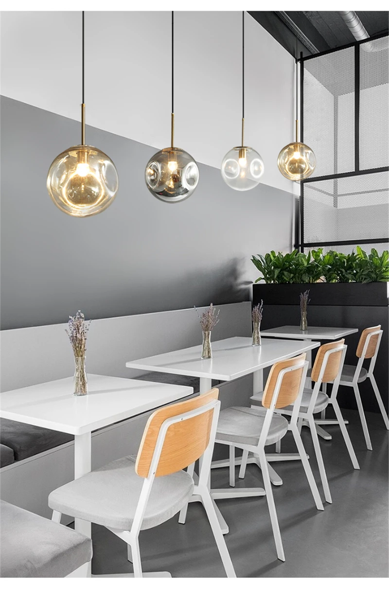 Elevate the ambiance of your living space with our Nordic Creative Glass Ball LED Pendant Lights. Designed to add a touch of artistry to your home decor, these pendant lights are perfect for bars, restaurants, dining rooms, kitchens, and more. Crafted with high-quality glass and featuring a sleek design, they illuminate your space with style and sophistication.