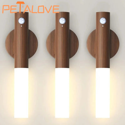 Upgrade your home with PETALOVE's Rechargeable Motion Sensor Wall Light – a versatile, wireless lighting solution perfect for bedrooms, stairs, and hallways. Featuring smart motion + daylight detection, it automatically turns on in the dark and shuts off after 20 seconds. The USB-rechargeable battery eliminates wiring hassles, while the magnetic mount allows easy installation and removal. With adjustable brightness and a modern wood-grain design, this LED wall sconce provides safety and convenience for kids, seniors, and late-night navigation.
