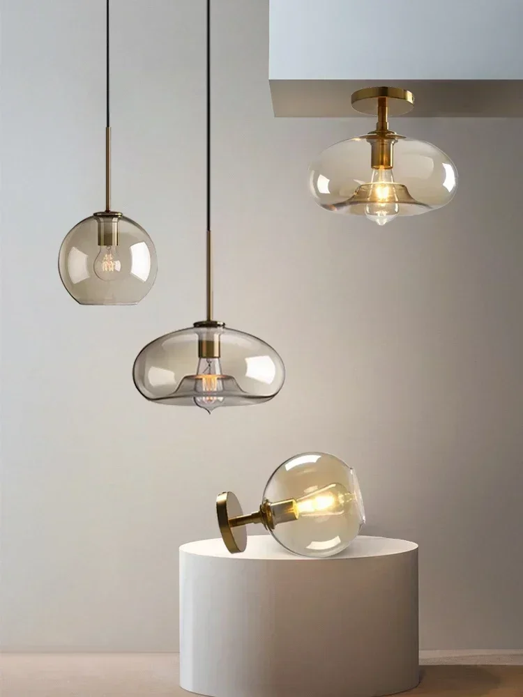 Retro Glass Pendant Light Chandelier - Minimalist LED Illumination for Stylish Room Decor