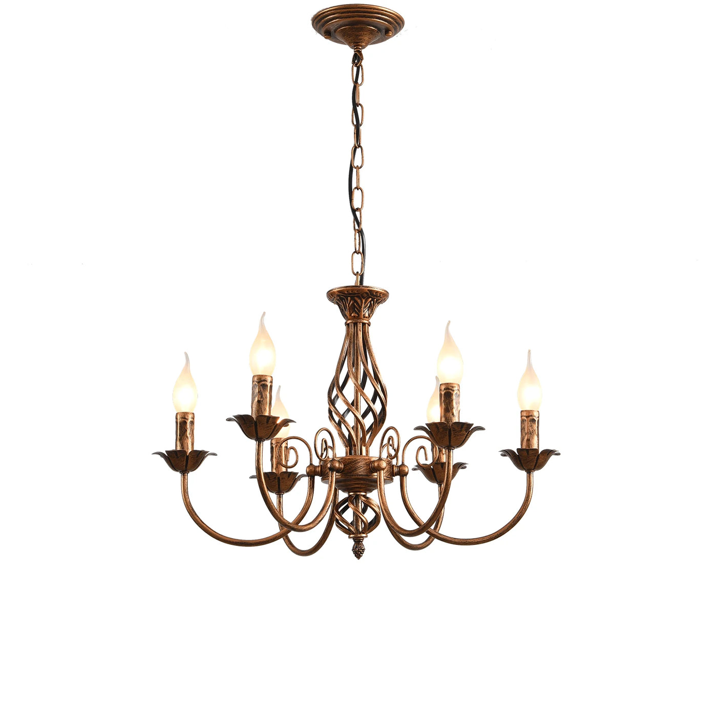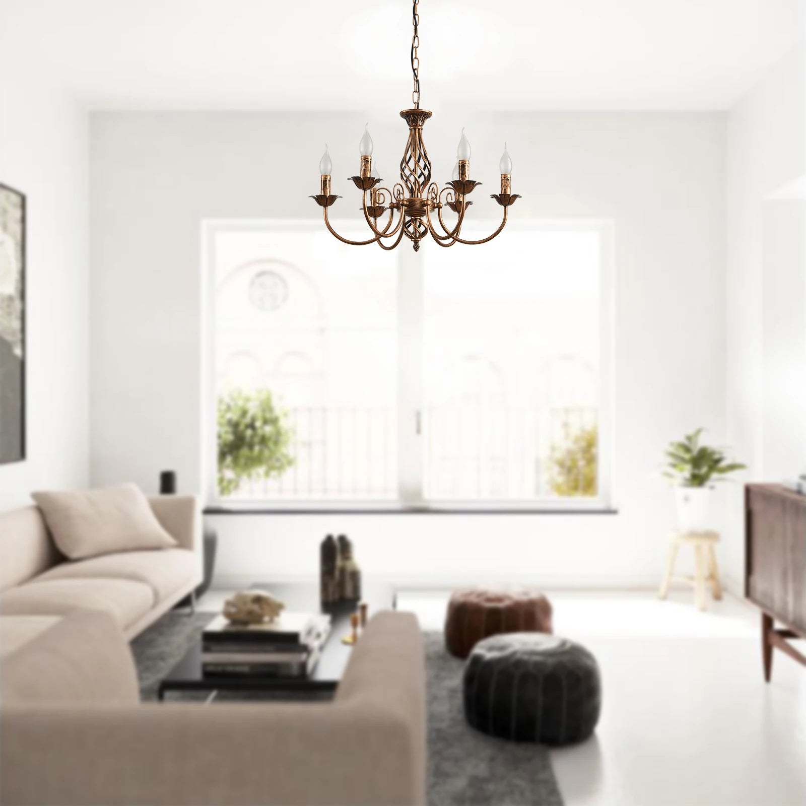 Add rustic charm to your home with this 6-light farmhouse chandelier, crafted to bring the timeless elegance of French country design into dining rooms, kitchens, or living spaces. The chandelier’s vintage bronze finish on sturdy iron exudes a refined yet welcoming vibe, perfect for farmhouse, rustic, or contemporary interiors. With its flush mount installation, this chandelier becomes a statement piece, casting a warm and inviting glow over any area. Its open design and metal frame allow ample illumination while creating an authentic, rustic atmosphere for dining and gathering.