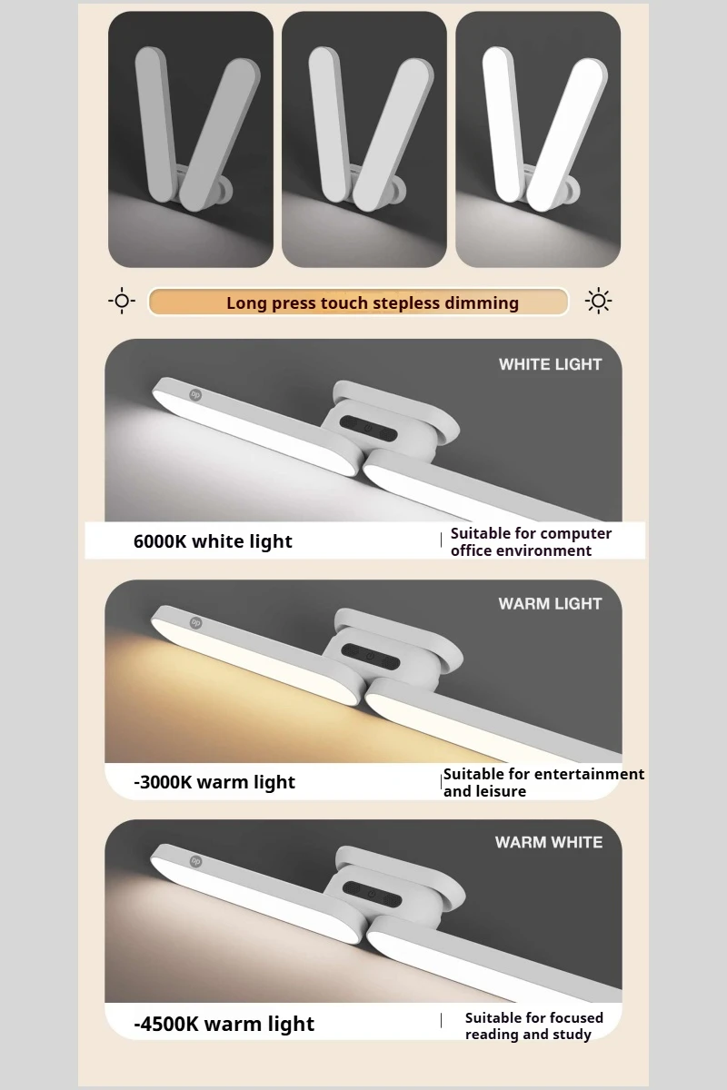 Experience comfortable and flexible lighting with this USB Rechargeable Dual-Head LED Touch Desk Lamp. The innovative magnetic adsorption design allows adjustable positioning for optimal illumination. With eye-protecting LED technology, it reduces glare and flickering, making it perfect for reading, studying, or working at your desk. The touch control feature provides seamless operation, combining modern functionality with sleek aesthetics.