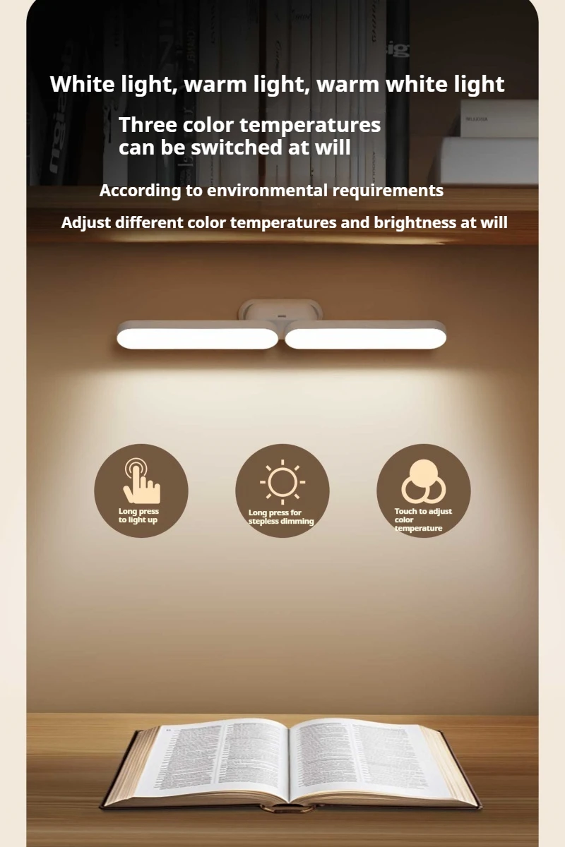 USB Rechargeable Dual-Head LED Touch Desk Lamp with Magnetic Adsorption for Eye-Protection